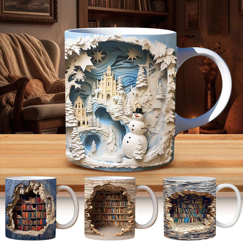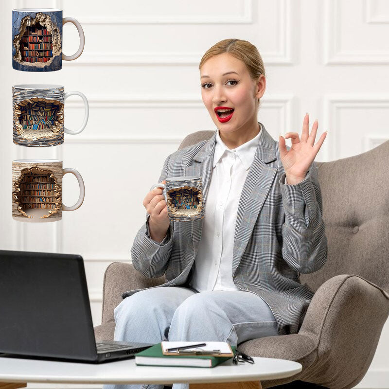 🎅 Exclusief Sinterklaasvoordeel!50% KORTING✨ Creatief 3D Boekenplank Mok (Keramiek) – Magnetronveilig, Vaatwasserbestendig & Decoratief (Perfect voor Boekenliefhebbers & Creatieve Decor!)