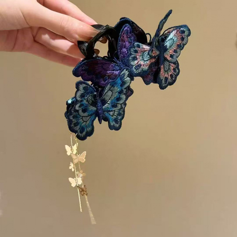 🎅 Exclusief Sinterklaasvoordeel!50% KORTING✨ Exclusief Elegante Vintage Vlinder Haarclip – Borduurde Details & Dansende Bedeltjes (Uniek Gracieus Kapsel Accessoire voor Onvergetelijke Stijl!)